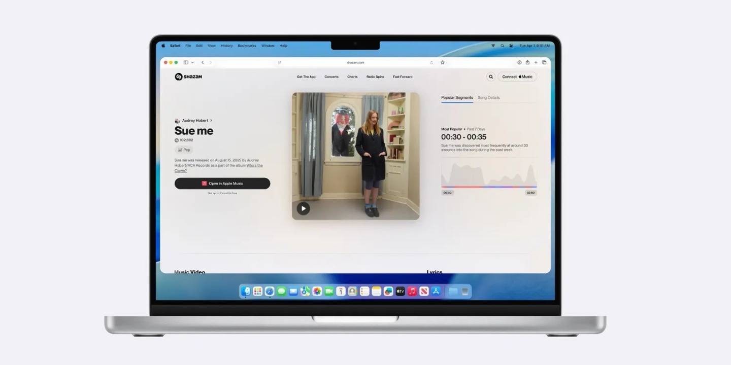 王人集苹果官方新闻稿,这项功能不错展示用户在何时调用 Shazam 识别音乐,适用于 Shazam 音乐名次榜中的热点歌曲,还大略展示歌曲各个段落的受接待进度。