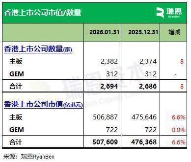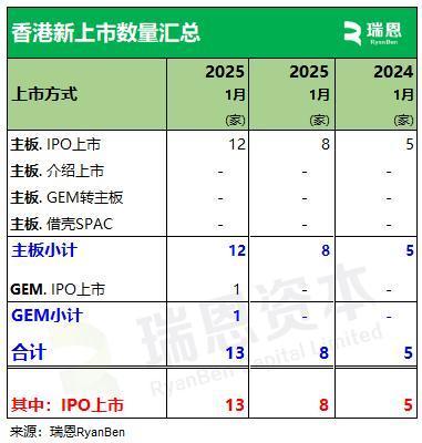 2026年1月香港新上市公司共13家(2024年8家、2023年5家),一齐通过IPO神志上市。