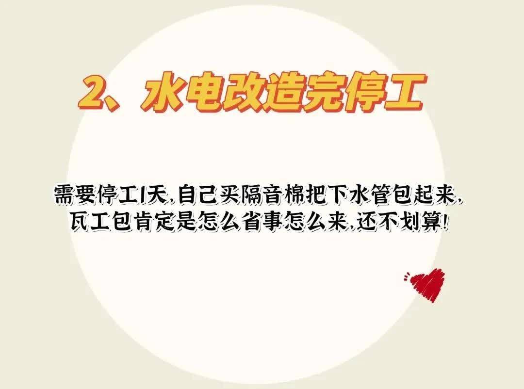 2. 水电改完:停工1天包下水管