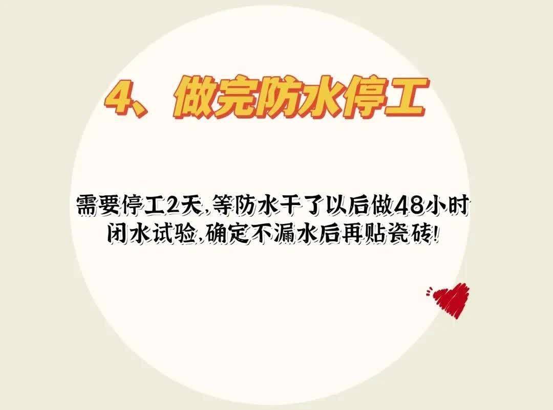 4. 作念完防水:停工2天+48小时闭水磨练