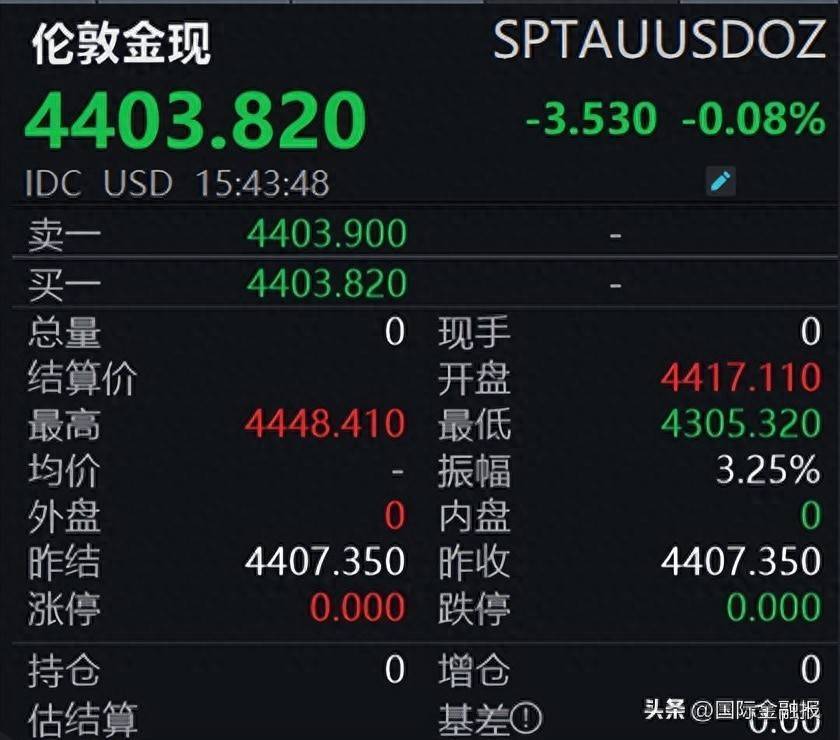 甩掉记者发稿,伦敦金现报4403.82好意思元/盎司,日内微跌0.08%,盘中最低涉及4305.32好意思元/盎司,最高则涉及4417.11好意思元/盎司,举座波动幅度明显放大。