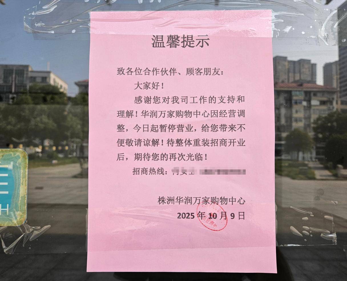 近日云开体育,株洲华润万家购物中心发布温馨领导称将暂停营业。凭证公告,华润万家购物中心因运筹帷幄休养,自10月9日起暂停营业。