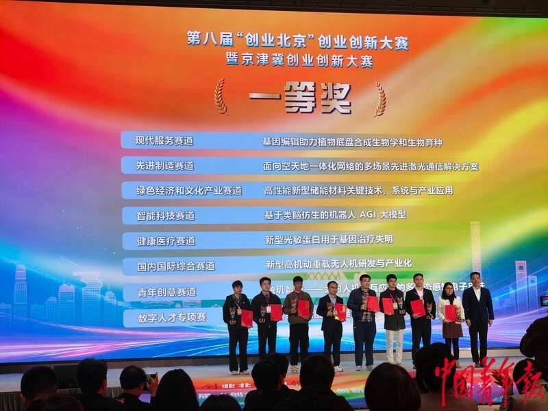 记者关注到,两场大赛的20个一等奖名堂中,多个名堂与前沿科技密切有关。举例,“创业北京”创业改革大赛后生创意赛谈一等奖名堂聚焦面向东谈主机交互应用的多模态感知电子皮肤,智能科技赛谈一等奖名堂聚焦基于类脑仿生的机器东谈主AGI大模子,健康医疗赛谈一等奖名堂聚焦新式光敏卵白用于基因挽回失明等等。